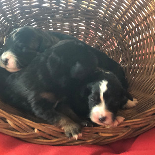 Here are the sneak peaks! Miniature Bernedoodle pups. We have 8 males and 4 females. We had started with 14, sadly we lost 2. These are stunning puppies. ENS has been started, first vet check and dew claws done.